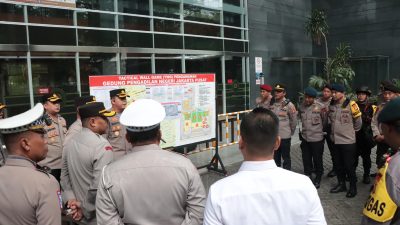 Kapolres Metro Jakarta Pusat Kombes Pol Susatyo Purnomo Condro memimpin langsung Tactical Wall Game (TWG) dan apel pengamanan sebelum kegiatan dimulai.