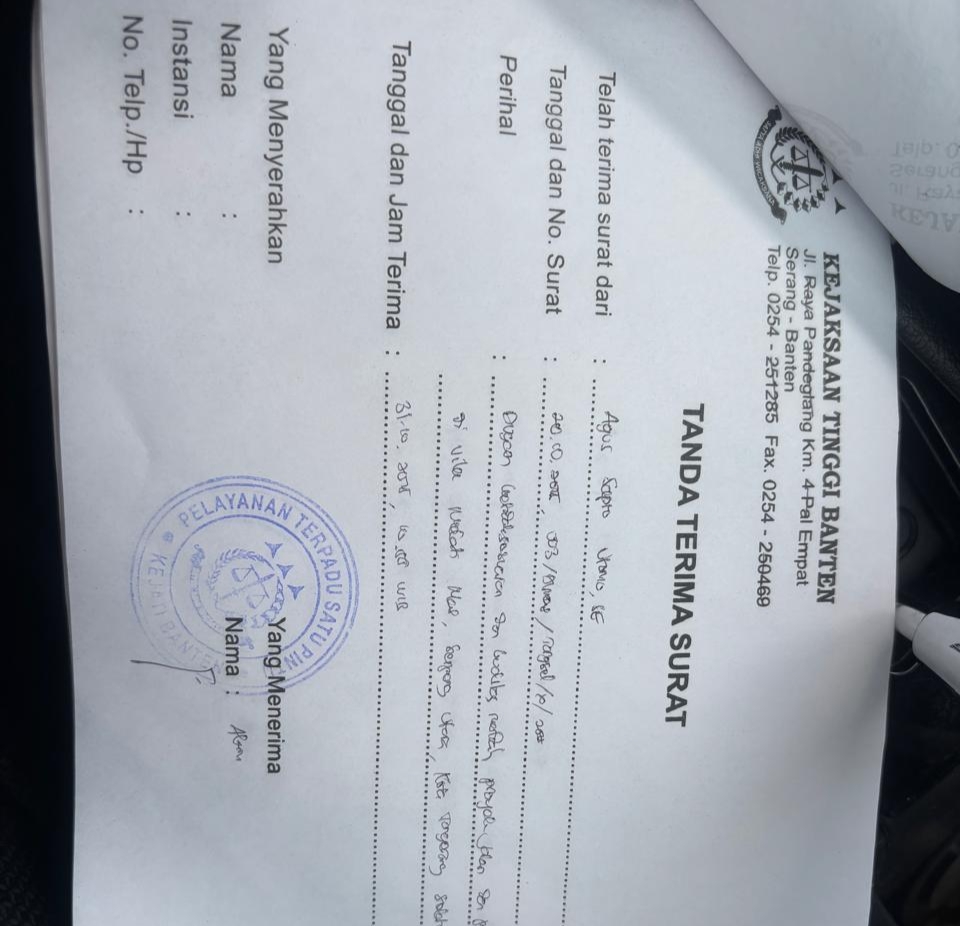 Di luar gedung Kejati, banyak warga Tangsel mulai tak percaya lagi pada mekanisme hukum. Mereka sudah terlalu sering melihat tumpukan DUMAS yang berakhir sebagai berkas bisu. Karena itu laporan Agus kini menjadi ujian nyata bagi Kejati Banten—ujian antara berani bekerja atau hanya berani mengesahkan tanda terima.