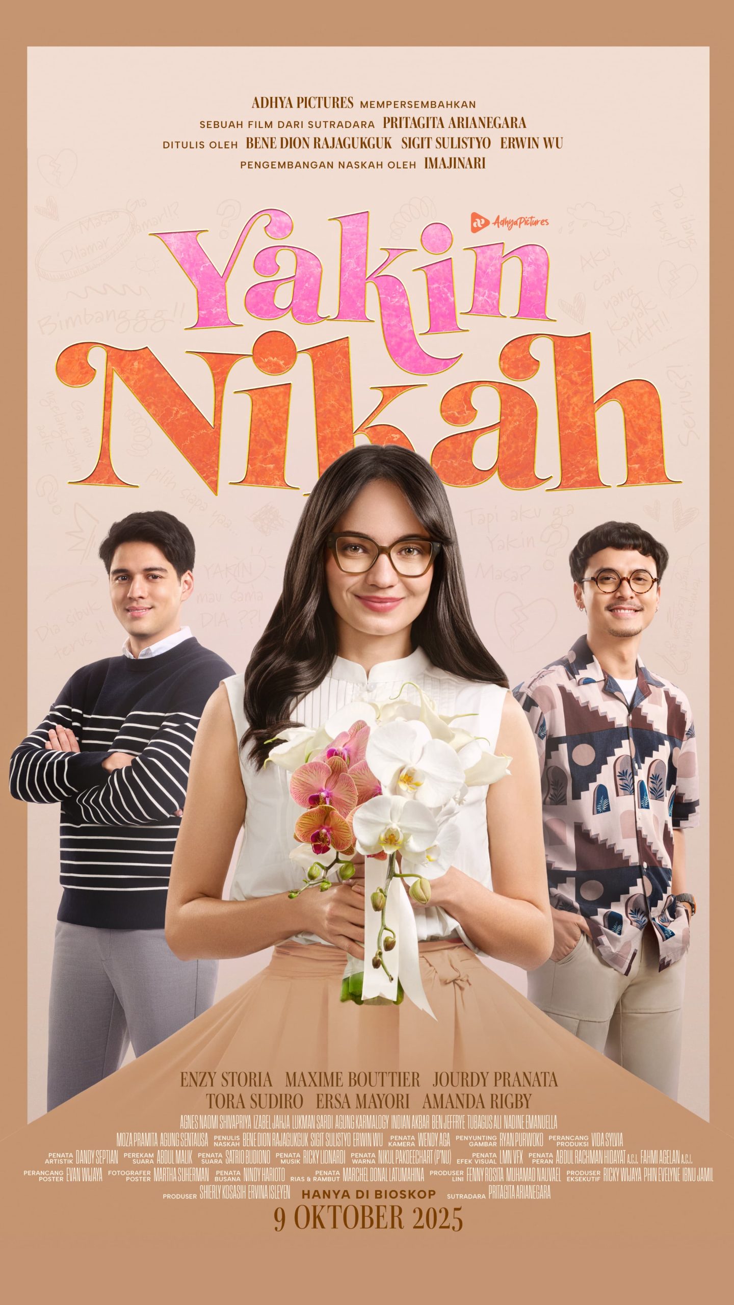 CHAKRANEWS.MY.ID.JAKARTA 9/10/25,– Era film komedi romantis gemas yang bikin senyum-senyum sendiri resmi kembali! Film Yakin Nikah dari Adhya Pictures akhirnya tayang di seluruh bioskop Indonesia mulai hari ini. Dibintangi oleh Enzy Storia, Maxime Bouttier, dan Jourdy Pranata, film ini siap menjadi tontonan wajib bagi siapa pun yang pernah galau karena pertanyaan, “kapan nikah?”