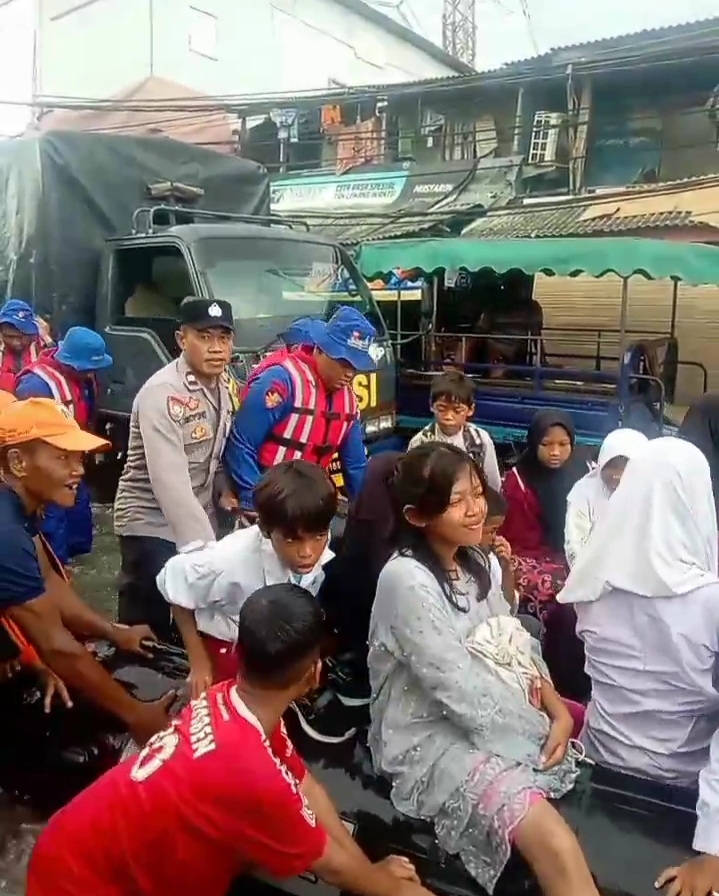 CHAKRANEWS.MY.IDJAKARTA, – Bhabinkamtibmas Muara Angke Polsek Kawasan Sunda Kelapa Polres Pelabuhan Tanjung Priok dan Ditpolairud Polda Metro Jaya serta Badan Penanggulangan Bencana Daerah (BPBD) membantu anak-anak sekolah yang akan berangkat ke sekolah dengan menyeberang di lokasi banjir rob di jalan Pelabuhan Muara Angke. Petugas pun mengangkat anak-anak berseragam sekolah untuk mengarungi banjir rob, yang arusnya cukup lumayan deras. Ketinggian air di badan jalan mencapai 40 sentimeter. Salah satu petugas kepolisian yang membantu anak-anak sekolah, yakni Bhabinkamtibmas Muara Angke Polsek Kawasan Sunda Kelapa Polres Pelabuhan Tanjung Priok, Aiptu Setiyono. “Banjir merendam badan jalan sehingga sulit untuk dilalui. Apalagi, bagi anak-anak yang pergi dan pulang sekolah melewati jalan ini. Sehingga kita bersama Satpolair dan BPBD membantu untuk mengarungi banjir rob, agar anak-anak tetap bisa belajar di sekolah,” ucap Setiyono pada wartawan, saat terjadi banjir Rob, Jumat (13/12/2024).