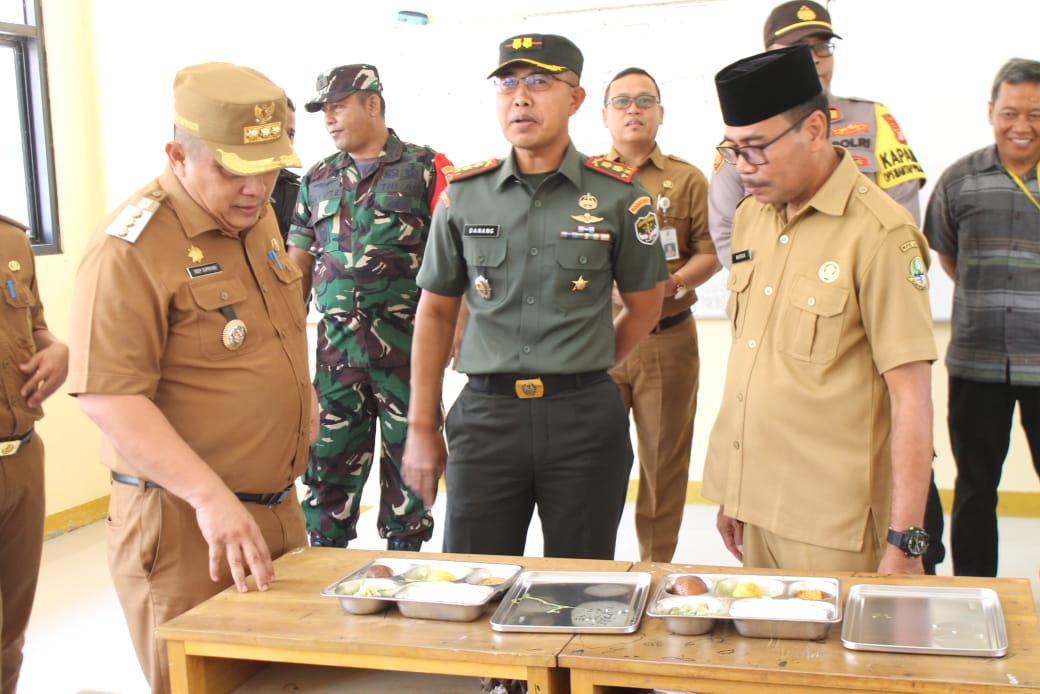 PJ Bupati Bekasi dan Dandim 0509 Kabupaten Bekasi tiba di SMAN 1 Pebayuran dan langsung meninjau pelaksanaan program. Mereka mengecek beberapa kelas untuk memastikan program Makan Bergizi Gratis
