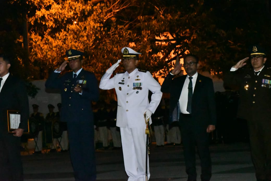 Komandan Lanal Sabang (Danlanal Sabang) Kolonel Laut (P) Gita Muharam, M.Sc., beserta Unsur Forkopimda Aceh ikut serta menghadiri pelaksanaan Apel Kehormatan dan Renungan Suci (AKRS) dalam rangka memperingati HUT Kemerdekaan RI Ke-79 Tahun 2024, bertempat di Taman Makam Pahlawan, Kecamatan Baiturrahman, Kota Banda Aceh, Sabtu (17/08/2024).