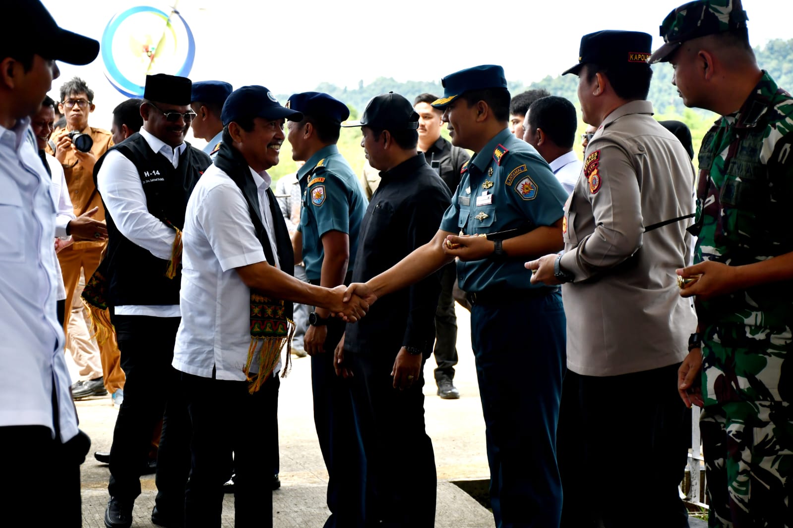 CHAKRANEWS. MY. ID – TNI AL, SABANG – Komandan Lanal Sabang (Danlanal Sabang) Kolonel Laut (P) Gita Muharam, M.Sc., beserta Unsur Forkopimda Sabang menyambut Kedatangan Menteri Kelautan dan Perikanan RI Ir. Sakti Wahyu Terenggono, M.M., beserta rombongan dalam rangka Ground Breaking Pembangunan Pelabuhan Perikanan Ie Meule Sabang menggunakan Pesud PK-YRA, bertempat di Lanud Maimun Saleh, Ujong Kareung, Kecamatan Sukajaya, Kota Sabang, Senin (26/08/2024).
