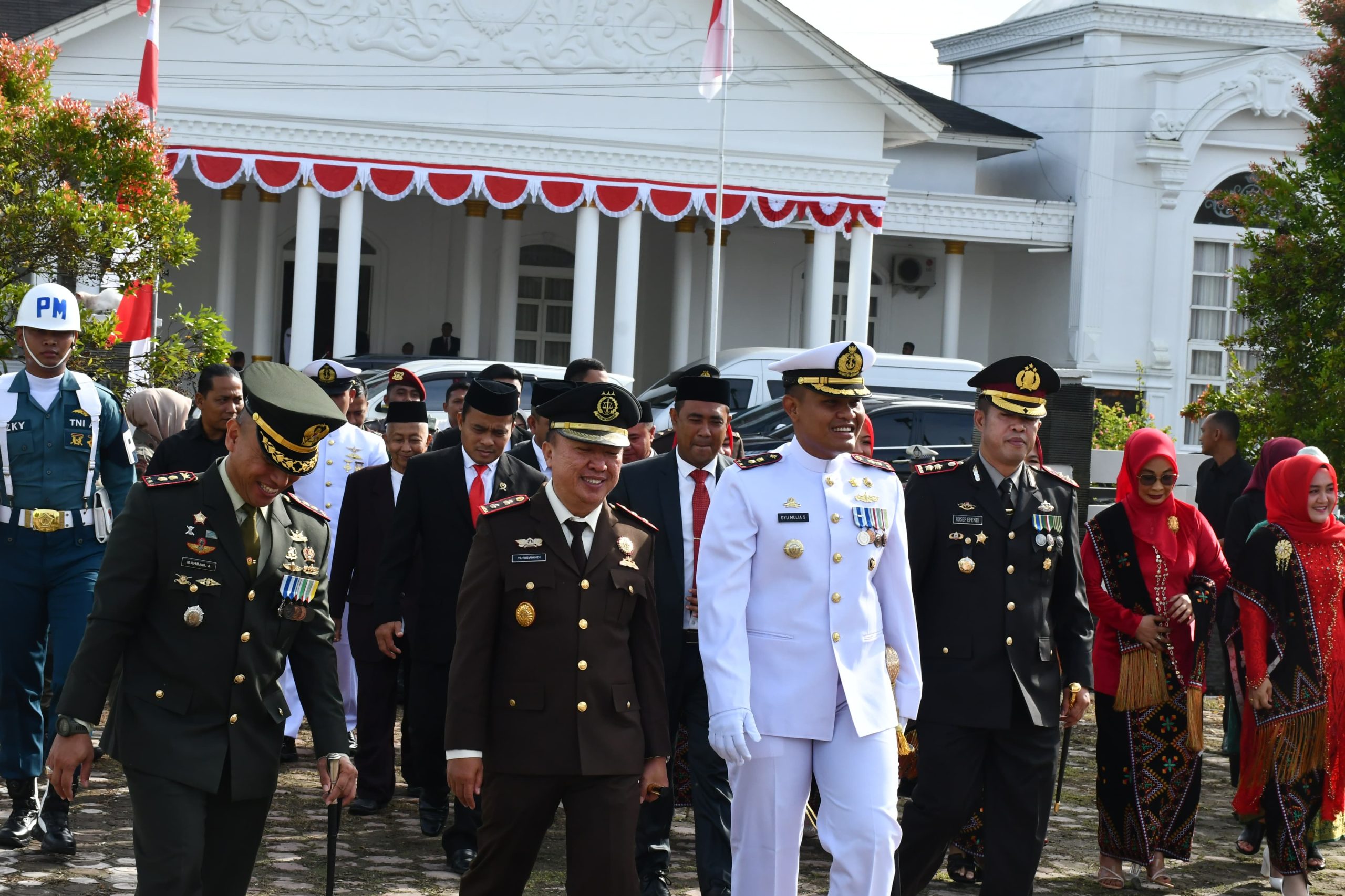 Bertindak selaku Inspektur Upacara Pj. Bupati Simeulue Reza Fahlevi, S.E., M.M., dan dihadiri oleh seluruh Forkopimda Kabupaten Simeulue.
