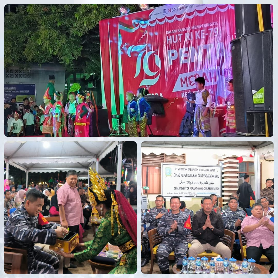 Dalam rangkaian menyambut peringatan Hari Ulang Tahun Ke-79 Kemerdekaan Republik Indonesia Tahun 2024 di Kabupaten Kepulauan Anambas, Komandan Lanal Tarempa Letkol Laut (P) Ari Sukmana, S.E., M.Tr. Opsla., turut hadir memeriahkan acara “Malam Pentas Merah Putih” yang di selenggarakan di Lapangan Taman Bermadah, Jalan Imam Bonjol, Kelurahan Tarempa, Kecamatan Siantan, Kabupaten Kepulauan Anambas, Jumat (16/8/2024).