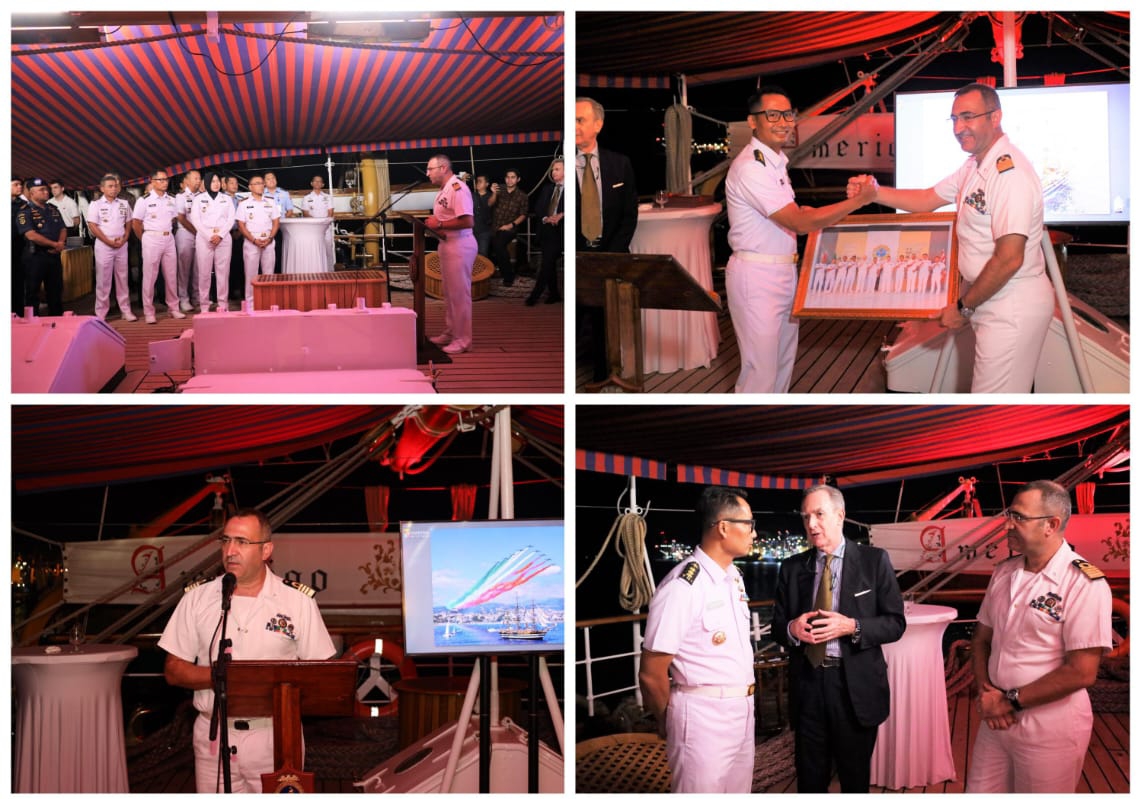 Kapten Kapal ITS Amerigo Vespucci, Captain (Navy) Giuseppe Lai menyambut kehadiran para pejabat dari Lantamal I Belawan serta undangan lainnya dan mengucapkan terima kasih telah menyempatkan diri untuk hadir pada acara deck reception ini.