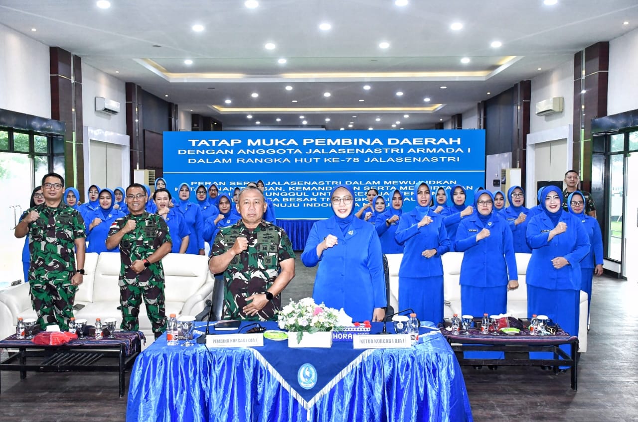 Komandan Pangkalan Utama TNI Angkatan Laut (Danlantamal) I Brigjen TNI (Mar) Jasiman Purba, S.E., CHRMP., selaku Pembina Korcab I Daerah Jalasenastri Armada I didampingi Ketua Korcab I Daerah Jalasenastri Armada I Ny. Othi Jasiman Purba, menghadiri kegiatan Tatap Muka dipimpin oleh Pangkoarmada I Laksamana Muda TNI Dr. Yoos Suryono Hadi, M.Tr (Han)., M.Tr. Opsla., selaku Pembina Daerah Jalasenastri Armada I didampingi Ketua DJA I Ny. Yanti Yoos Suryono Hadi, selaku Ketua Daerah Jalasenastri Armada I, dalam rangka menyambut HUT Ke-78 Jalasenastri Tahun 2024 melalui Vicon, bertempat di Gedung Yos Sudarso Mako Lantamal I, Jalan Serma Hanafiah No. 01 Belawan, Sumatera Utara, Kamis (15/8/2024).