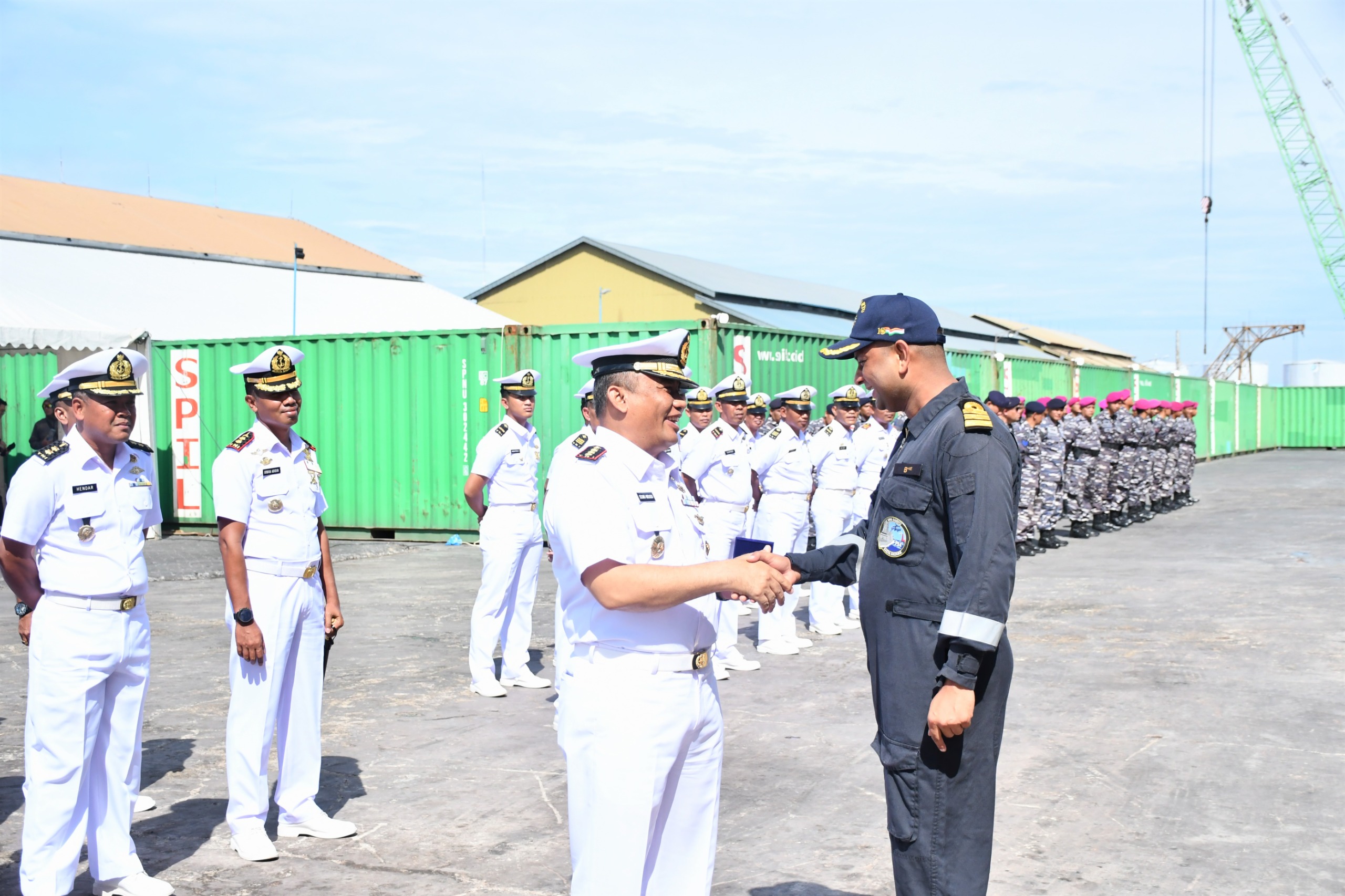 Komandan Pangkalan Utama TNI Angkatan Laut I (Danlantamal I) Brigjen TNI (Mar) Jasiman Purba, S.E., CHRMP., diwakili Wadan Lantamal I Kolonel Laut (P) Siswo Widodo, S.T., melepas keberangkatan Kapal Perang Angkatan Laut India INS Saryu P54, bertempat di Dermaga Pelindo 104 Belawan, Sumatera Utara, Sabtu (22/6/2024).