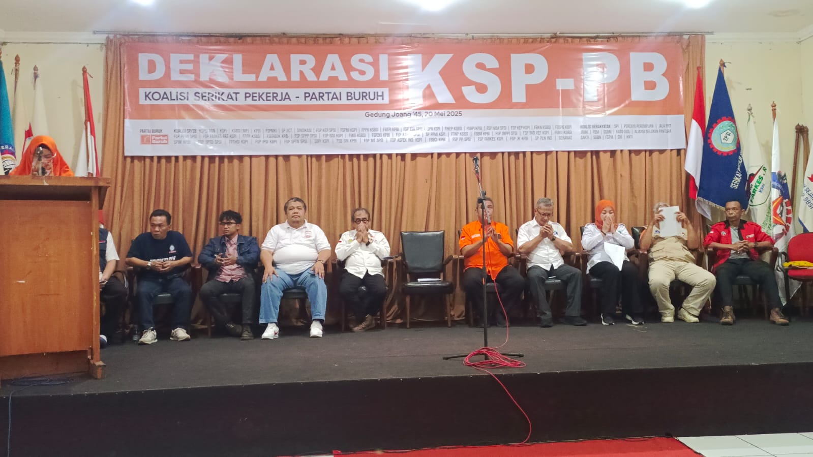 Oleh karena itu, pada hari ini, 20 Mei 2025 di Gedung Juang 45 Jakarta telah dideklarasikan koalisi serikat pekerja, koalisi organisasi kerakyatan, dan Partai Buruh yang berhimpun dalam satu koalisi besar bernama Koalisi Serikat Pekerja — Partai Buruh yang disingkat KSP-PB. Koalisi ini terdiri dari konfederasi serikat pekerja terbesar, mayoritas federasi serikat pekerja di tingkat nasional, organisasi petani, organisasi guru dan tenaga honorer, organisasi nelayan, organisasi tenaga medis, organisasi media dan konten kreator, organisasi transportasi online (gojek, grab, maxime, dil), serikat pekerja transportasi, organisasi pekerja rumah tangga, organisasi buruh migran, organisasi miskin kota dan pekerja informal, organisasi