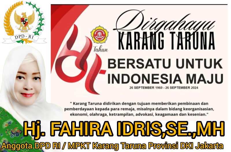 Fahira Idris sebagai Majelis Pertimbangan Karang Taruna (MPKT) Provinsi DKI Jakarta yang juga Anggota DPD RI Dapil Provinsi DKI Jakarta akan terus sinergis, kolaborasi dan bekerja bersama-sama dengan semua Insan Karang Taruna di Provinsi DKI Jakarta untuk terus Bersatu untuk Indonesia Maju.
