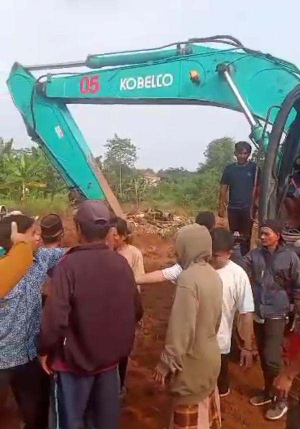 Diwarnai teriakan ratusan warga Parungpanjang Kabupaten Bogor nekad melakukan aksi penghadangan alat berat yang tengah mengerjakan proyek milik pengembang di Kampung Nangela Jagabita Kecamatan Parungpanjang Kabupaten Bogor, Jumat (6/9/2024) siang.