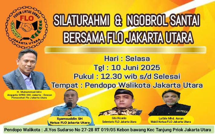 Dalam giat Silaturahmi yang diadakan Forum Lintas Ormas (FLO) Jakarta Utara, mengambil tema, “Silaturahmi & Ngobrol Santai Bersama FLO Jakarta Utara”. Alhamdulillah pada saat acara berlangsung begitu antusias sekali.