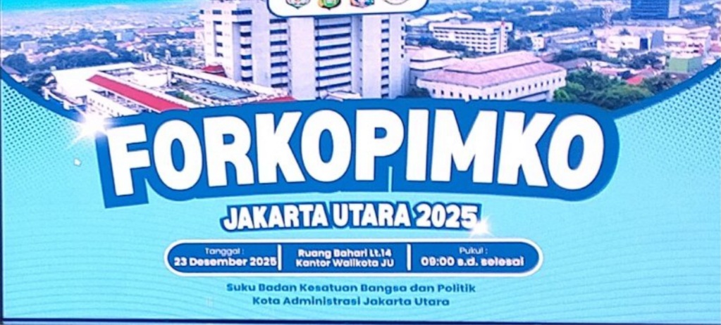 CHAKRANEWS.MY.ID.JAKARTA 24/12/25,– Forkopimko Jakarta Utara Perkuat Sinergi Jelang Pengamanan Natal dan Tahun Baru Forum Koordinasi Pimpinan Kota (Forkopimko) Jakarta Utara menggelar kegiatan di Ruang Bahari, Lantai 14, Kantor Wali Kota Administrasi Jakarta Utara. Acara ini diselenggarakan oleh Suku Badan Kesatuan Bangsa dan Politik (Kesbangpol) Kota Administrasi Jakarta Utara dan dihadiri sekitar 100 peserta.