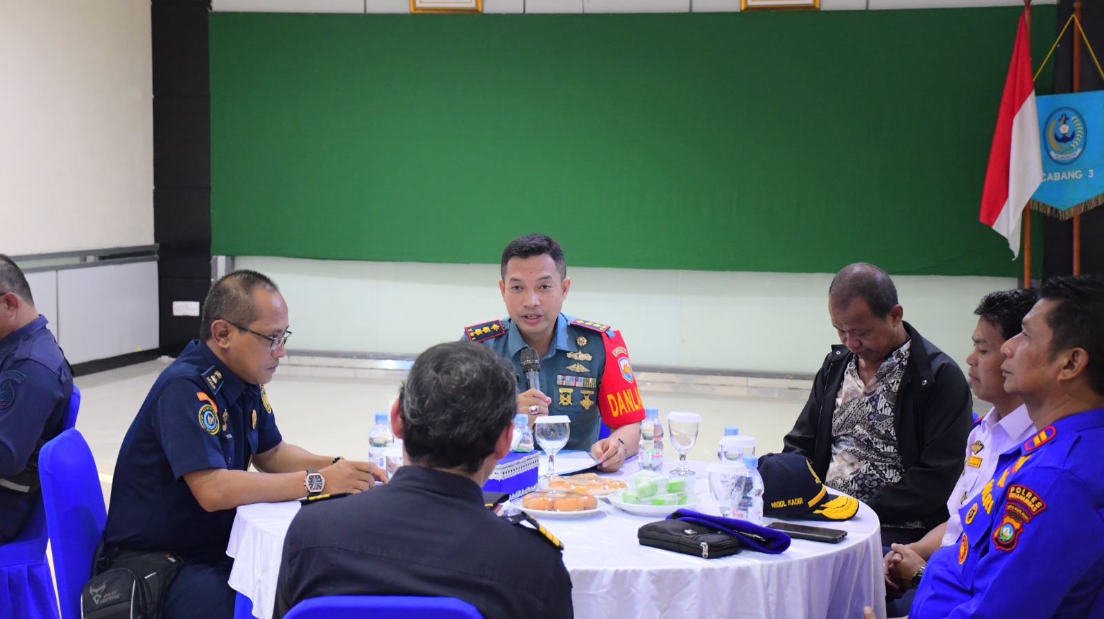 Bertempat di Gedung Napoleon Lanal Tarempa, Jalan Kartini, Kecamatan Siantan, Kabupaten Kepulauan Anambas, Komandan Pangkalan TNI AL Tarempa Letkol Laut (P) Ari Sukmana, S.E., M.Tr. Opsla., mengundang dan mengajak Stakeholder Unsur Maritim dalam acara Coffee Morning dengan agenda diskusi dan dengar pendapat penegakan hukum dan aturan berlayar terhadap pengguna jasa transportasi laut terkait pasca kejadian kecelakaan laut KM. Samarinda pada 26 Juli 2024 beberapa waktu lalu.