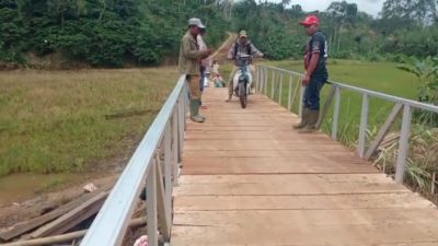 Peratin Pekon Pura Laksana, ATTA, dalam keterangannya pada Sabtu (25/4/2026) menyampaikan bahwa pembangunan jembatan berjalan dengan baik meskipun sempat tersendat akibat keterbatasan dana. “Alhamdulillah, walaupun terseok-seok dengan kekurangan anggaran, jembatan ini akhirnya bisa selesai dan sudah dapat digunakan masyarakat untuk beraktivitas kembali,” ujarnya.