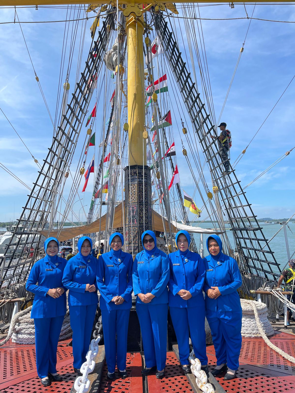 Ketua Cabang 5 Korcab IV Daerah Jalasenastri Armada I Ny. Erni Eko Agus Susanto bersama pengurus turut serta mendampingi Danlanal Bintan dalam rangka menyambut kedatangan KRI Dewa Ruci yang membawa misi Muhibah Budaya Jalur Rempah Tahun 2024 di Dermaga Lanal Bintan, Tanjung Uban, Jum’at (05/07/2024).