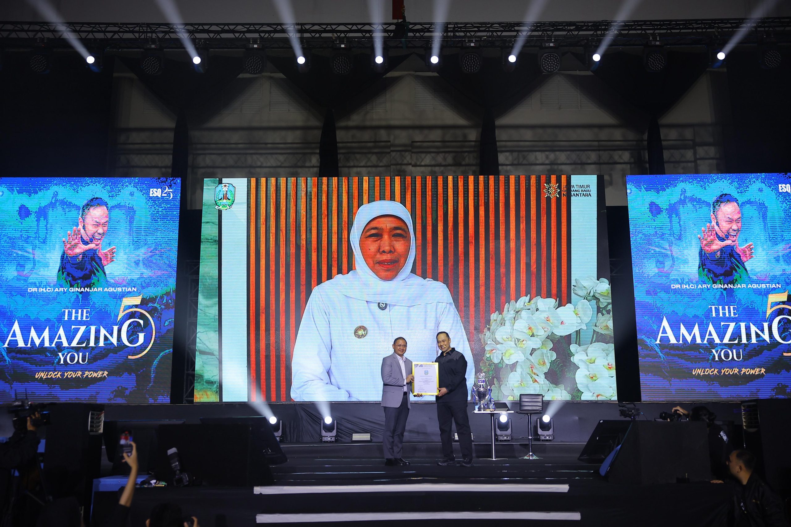 CHAKRANEWS.MY.ID TANGERANG – ESQ menggelar Gelaran akbar Bertajuk Amazing You Training acara tersebut digelar ESQ di ICE BSD Tangerang, Pada Sabtu (24/06/2025). Acara tersebut dihadiri lebih dari 12.000 peserta, dalam acara tersebut sebuah penghargaan istimewa diberikan kepada Pemerintah Provinsi Jawa Timur.