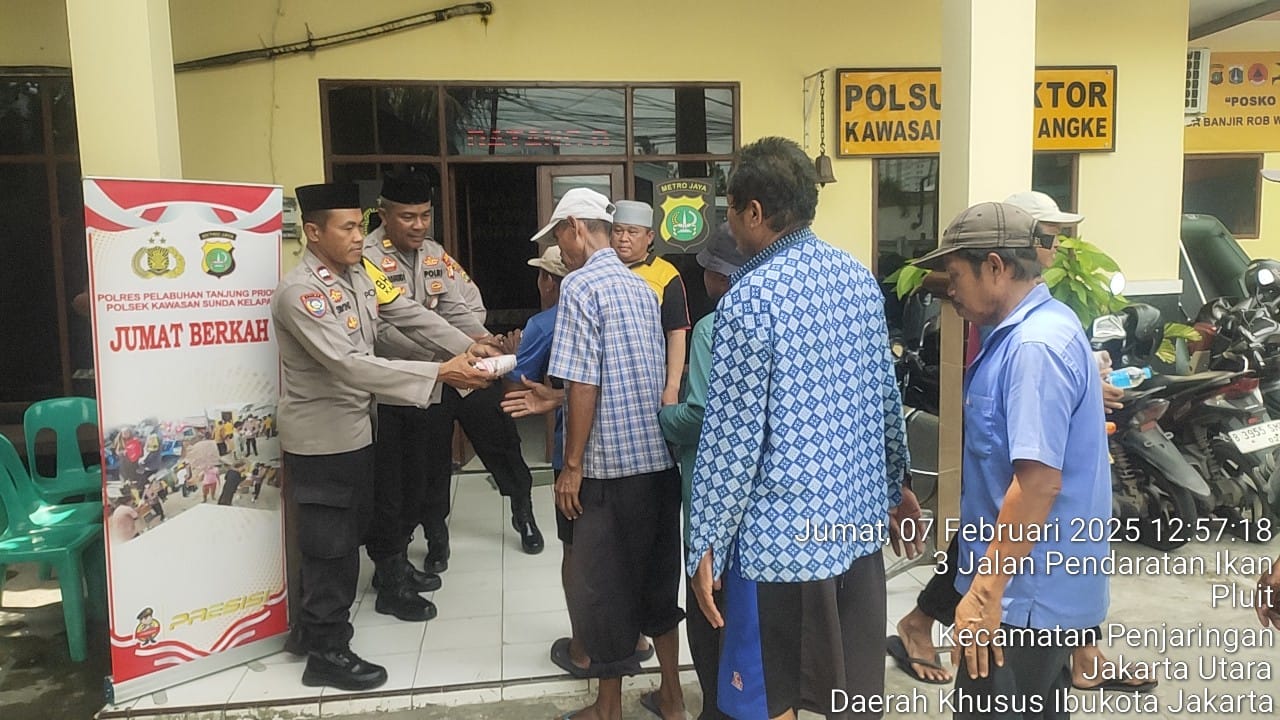CHAKRANEWS.MY.ID JAKARTA,-Polsek Kawasan Sunda Kelapa Polres Pelabuhan Tanjung Priok kembali lagi melaksanakan kegiatan Berbagi Makanan Untuk Sesama dalam Jumat Berkah dengan membagikan 50 paket makanan siap santap kepada pedagang ikan, ojeg, sopir, kernet, petugas kebersihan, buruh di Pelabuhan Muara Angke di Polsubsektor Kawasan Muara Angke, Jumat (7/02/2025).