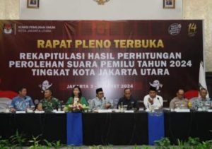 CHAKRANEWS.MY.ID JAKARTA, – Kapolres Metro Jakarta Utara Kombes Pol Gidion Arif Setyawan, S.I.K, S.H, M.Hum, menghadiri rapat pleno terbuka rekapitulasi hasil penghitungan perolehan suara Tingkat Kota Jakarta Utara Pemilu Tahun 2024 di Hotel Mercure Ancol Taman Impian Jaya Ancol Jakarta Utara pada hari Minggu (03/03/2024).