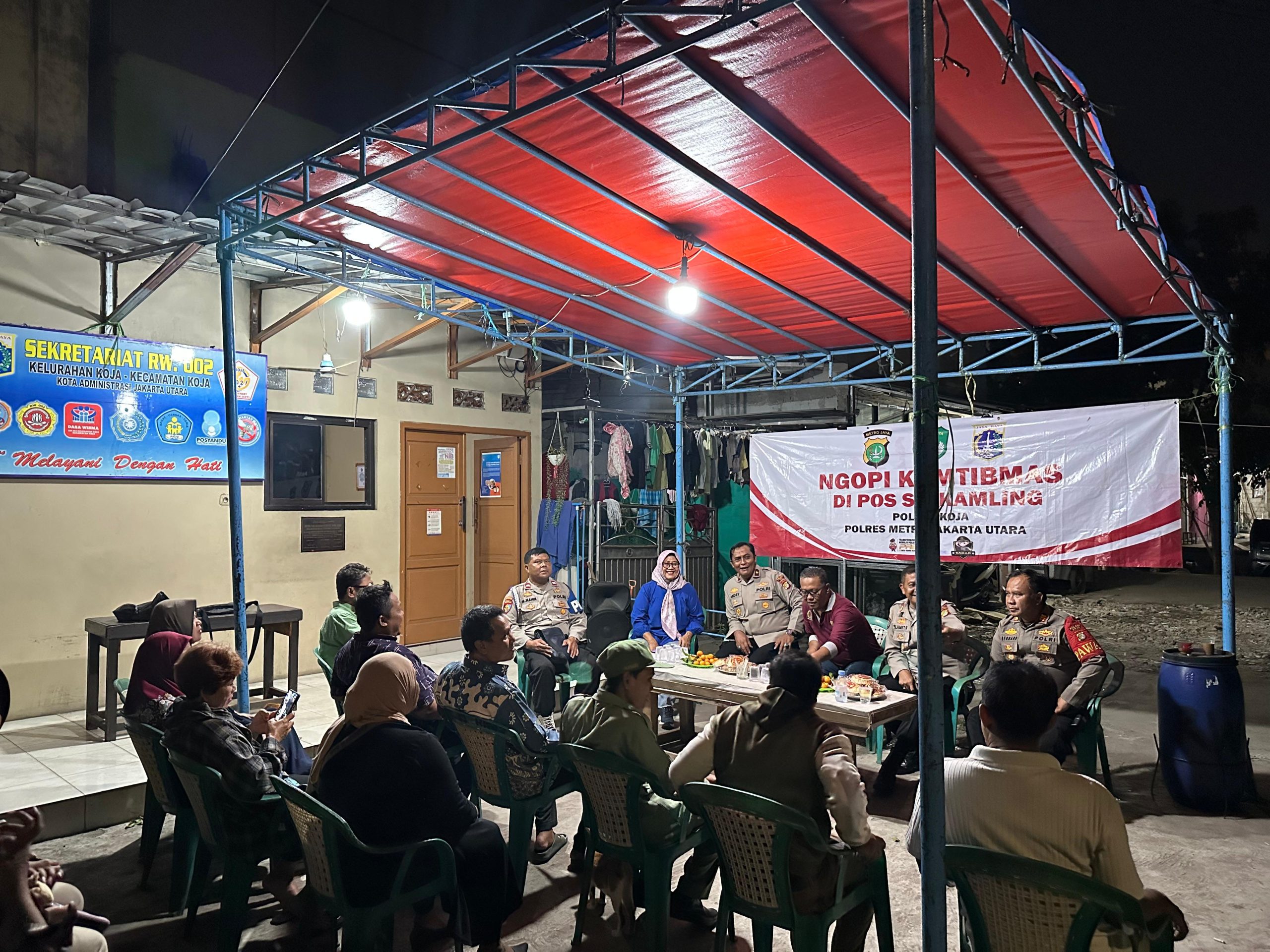 Kegiatan yang dimulai pukul 20.00 WIB ini dipimpin langsung oleh Kapolsek Koja Kompol Dr. Andry Suharto, SH, MH, didampingi jajaran, yaitu Kanis Samapta AKP Bernadus Koloay, SH, MH, Kanit Binmas AKP Slamet R, dan Ps Kanit Propam Aiptu M. Manik, dan dihadiri juga oleh Ketua RW 02, Hj. Chotijah; Ketua LMK RW 02, Iwan; para Ketua RT; Danton RW, anggota Karang Taruna, serta perwakilan warga setempat. Dalam suasana santai, penuh keakraban, dan ditemani secangkir kopi hangat, Kapolsek Koja mendengarkan berbagai masukan, keluhan, serta saran dari masyarakat.