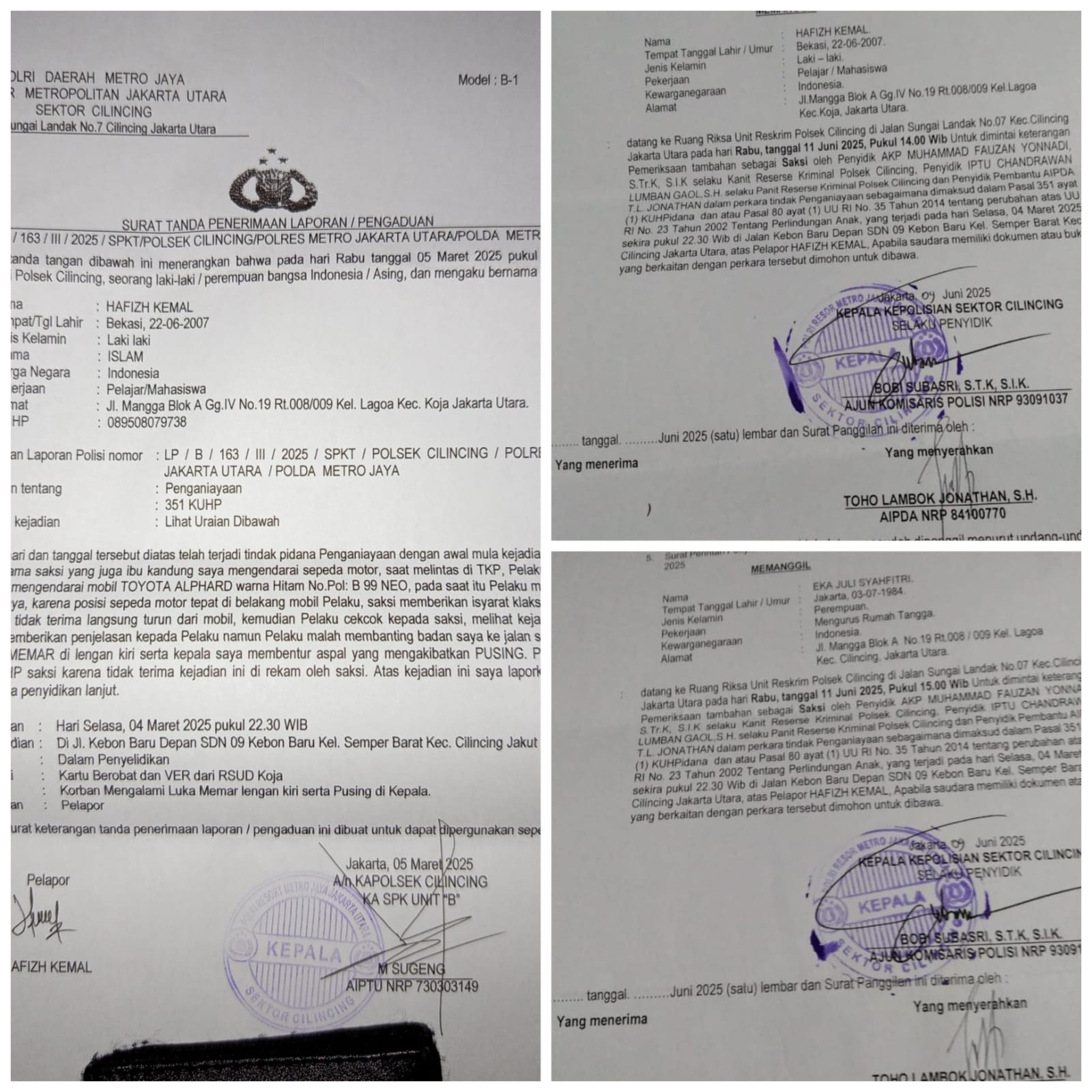 CHAKRANEWS.MY.ID, — Jakarta –, Kasus penganiayaan yang menimpa HK di Cilincing memasuki babak baru yang penuh ketidakpastian. Berkas perkara dikembalikan Kejaksaan Negeri Jakarta Utara karena belum lengkap, sehingga HK dan ibunya kembali dipanggil Polsek Cilincing pada Rabu, 11 Juni 2025. Laporan Polisi bernomor LP/B/163/III/2025/SPKT/POLSEK CILINCING/POLRES METRO JAKARTA UTARA/POLDA METRO JAYA menjerat pelaku dengan Pasal 351 KUHP.