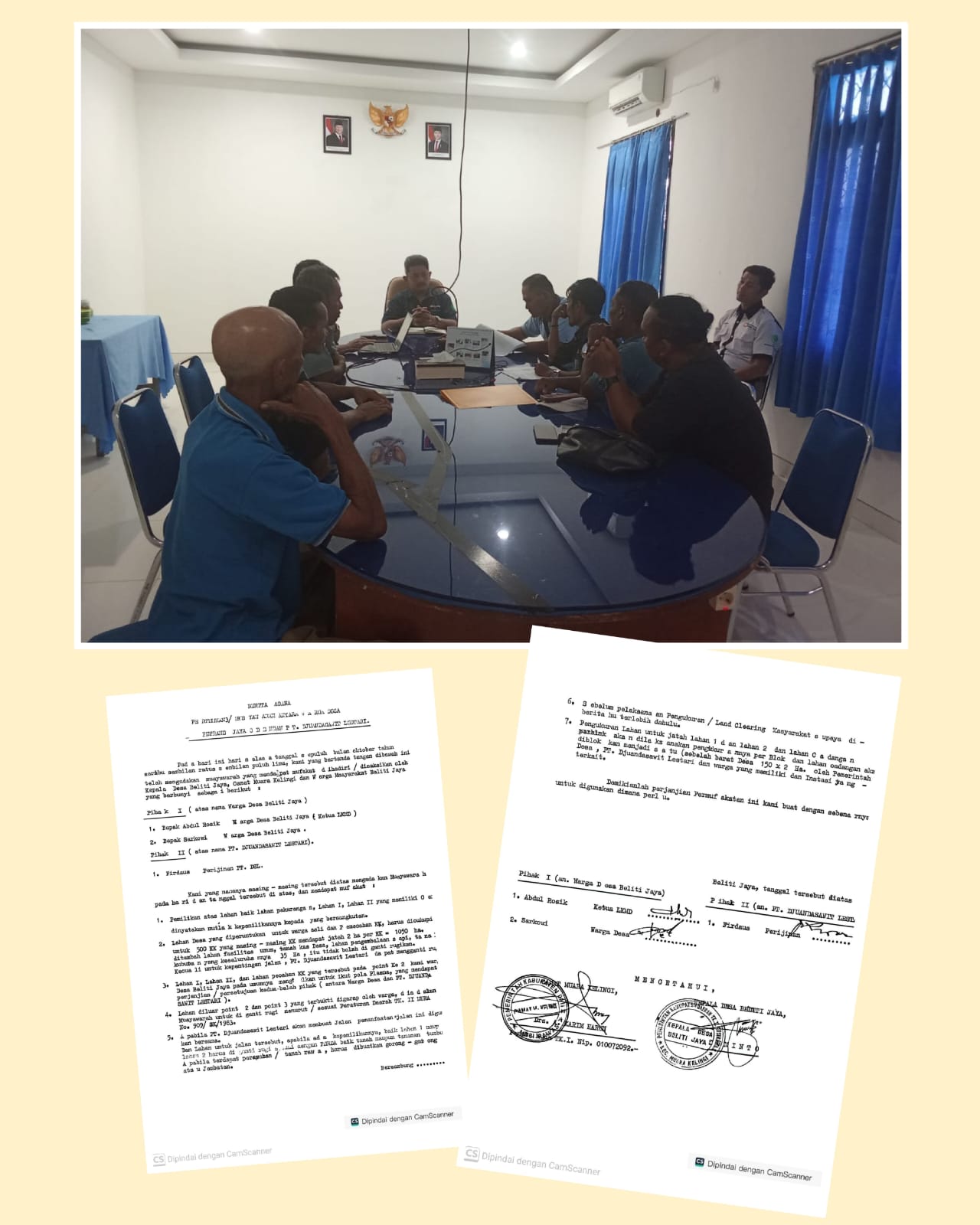 Kesepakatan dibuat pada 10 Oktober 1995 melalui musyawarah antara warga, pemerintah desa, pihak kecamatan, aparat keamanan, dan perusahaan. Namun hingga Februari 2026, realisasinya belum juga terlaksana.