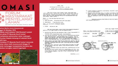 CHAKRANEWS.MY.ID.MUSIRAWAS 15/2/26 Konflik lahan antara warga Desa Beliti Jaya, Kecamatan Muara Kelingi, Kabupaten Musirawas (Mura), dengan PT Djuanda Sawit Lestari (PT.DSL) kembali mencuat. Forum Masyarakat Penyelamat Lahan mendatangi pihak perusahaan pada Sabtu, 14 Februari 2026, menuntut realisasi kesepakatan yang dibuat sejak 10 Oktober 1995 namun hingga kini belum dipenuhi.