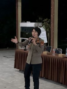 Kaur Bin Ops Satbinmas Polres Metro Bekasi Kota AKP Puji Astuti yang menjadi narasumber mengisi sesi acara pembinaan ormas dengan materi Wawasan Kebangsaan.