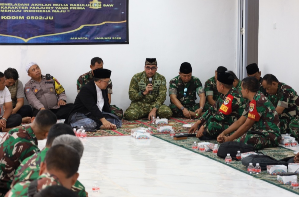 Dandim 0502/Jakarta Utara Kolonel Inf H. Dony Gredinand, S.H., M.Tr.Han., M.I.Pol., yang berhalangan hadir karena tugas kedinasan, diwakili oleh Pabung Kodim 0502/JU Mayor Czi Yuhana. Dalam sambutannya, disampaikan bahwa peringatan Isra Mi’raj merupakan momentum penting untuk merefleksikan perjalanan spiritual Nabi Muhammad SAW sekaligus memperkuat keimanan dan ketakwaan prajurit dalam menjalankan tugas pengabdian.