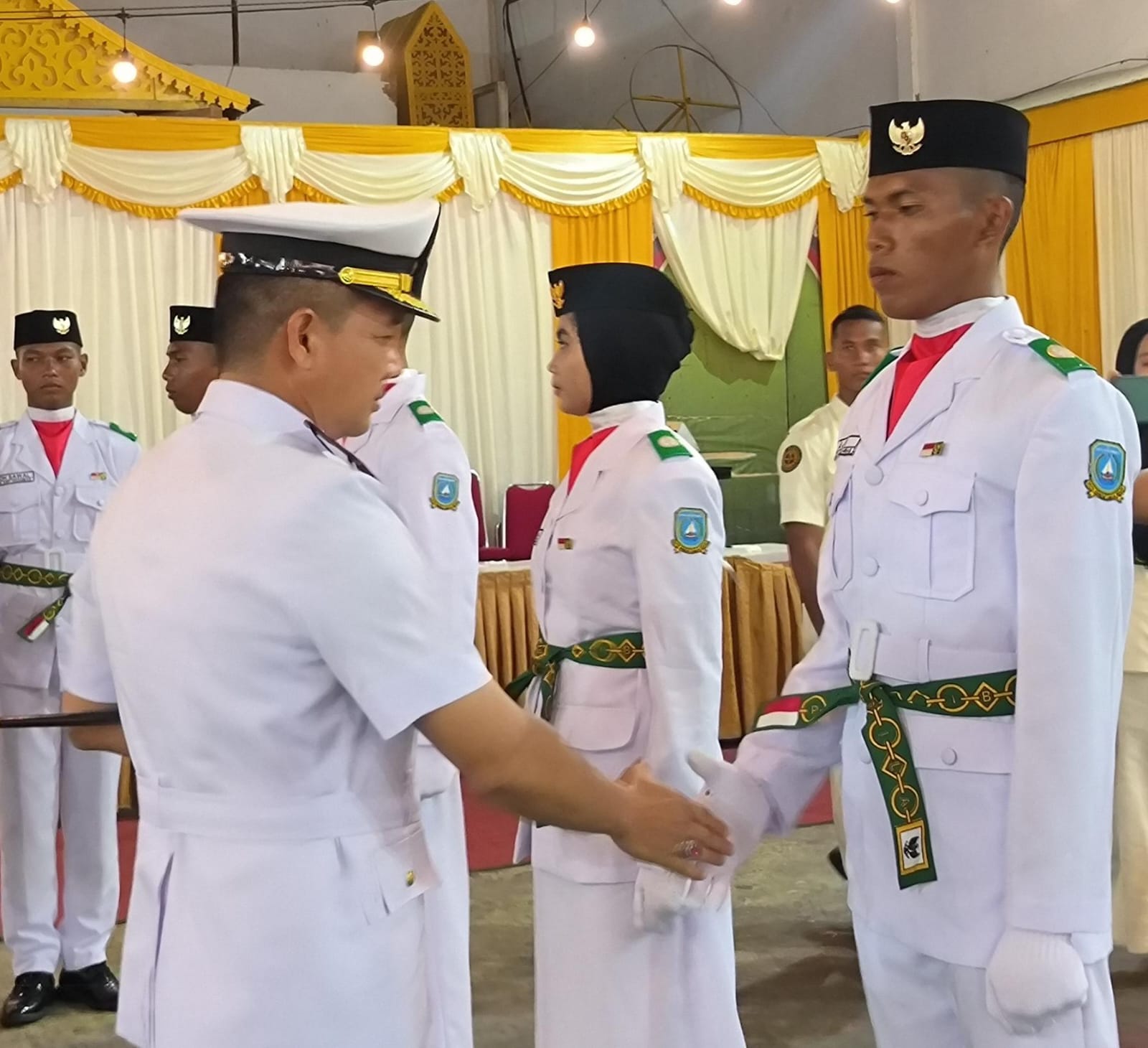 Komandan Lanal Tarempa Letkol Laut (P) Ari Sukmana, S.E., M.Tr. Opsla., menghadiri Upacara Pengukuhan Pengibar Bendera Tingkat Kabupaten Kepulauan Anambas 2024 yang dipimpin oleh Wakil Bupati Kabupaten Kepulauan Anambas yang akan bertugas dalam pengibaran dan penurunan bendera pada saat Upacara 17 Agustus 2024 yang mengusung tema “Nusantara Baru, Indonesia Maju”, bertempat di Lapangan Bola Sulaiman Abdullah Tarempa, Kecamatan Siantan, Kabupaten Kepulauan Anambas, Kamis (15/08/2024).