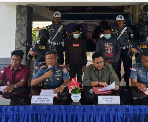 TNI AL, Bintan,– Bertempat di Mako Lanal Bintan, Komandan Lanal Bintan Kolonel Laut (P) Eko Agus Susanto, S.E., M.M., melaksanakan Press Release terkait Lanal Bintan dan Satgas Pora (Pengawasabn Orang Asing) berhasil mengamankan penyelundupan WNA China dari Malaysia tujuan Batam, dengan menggunakan boat pancung jenis slodang mesin tempel merk yamaha 40 PK di Perairan Selat Riau (Karang Galang), Senin (28/10/2024).