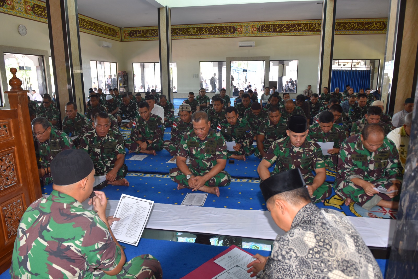 Menjelang Hari Ulang Tahun Ke-79 Kemerdekaan Republik Indonesia, Personel Lantamal I melaksanakan doa bersama dengan tema ‘’Nusantara Baru Indonesia Maju’’ setelah Shalat Jumat, bertempat di Masjid AL-Abror Mako Lantamal I, Jalan Serma Hanafiah No.01 Belawan, Sumatera Utara, Jumat (16//8/2024).