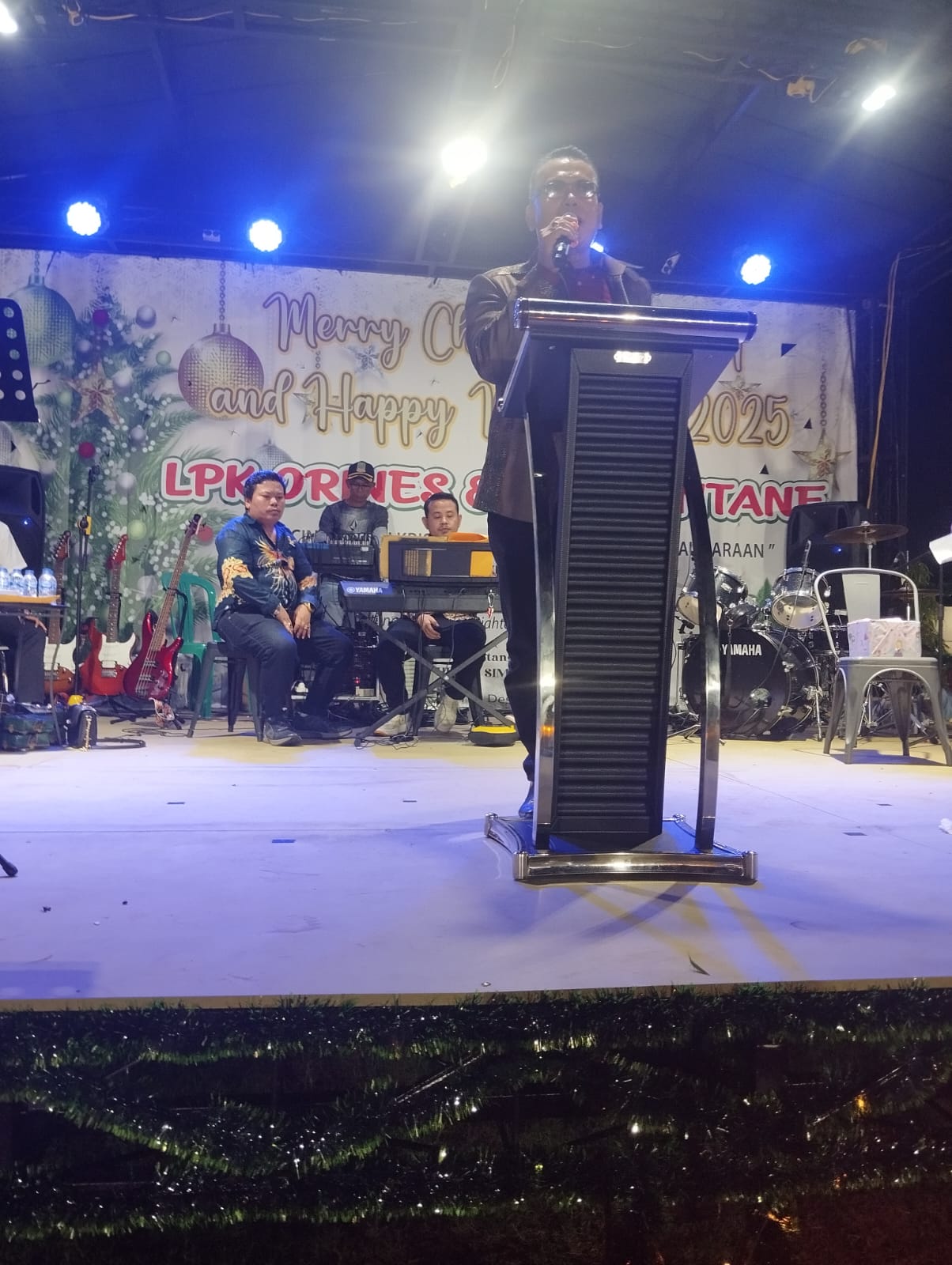 ” Kami merasa bahagia atas undangan dan bisa hadir untuk merayakan Natal pada malam hari ini terimakasih kepada Bapak Galumban Golfi Sianturi beserta jajarannya, Bapak Pendeta D. SIMARMATA