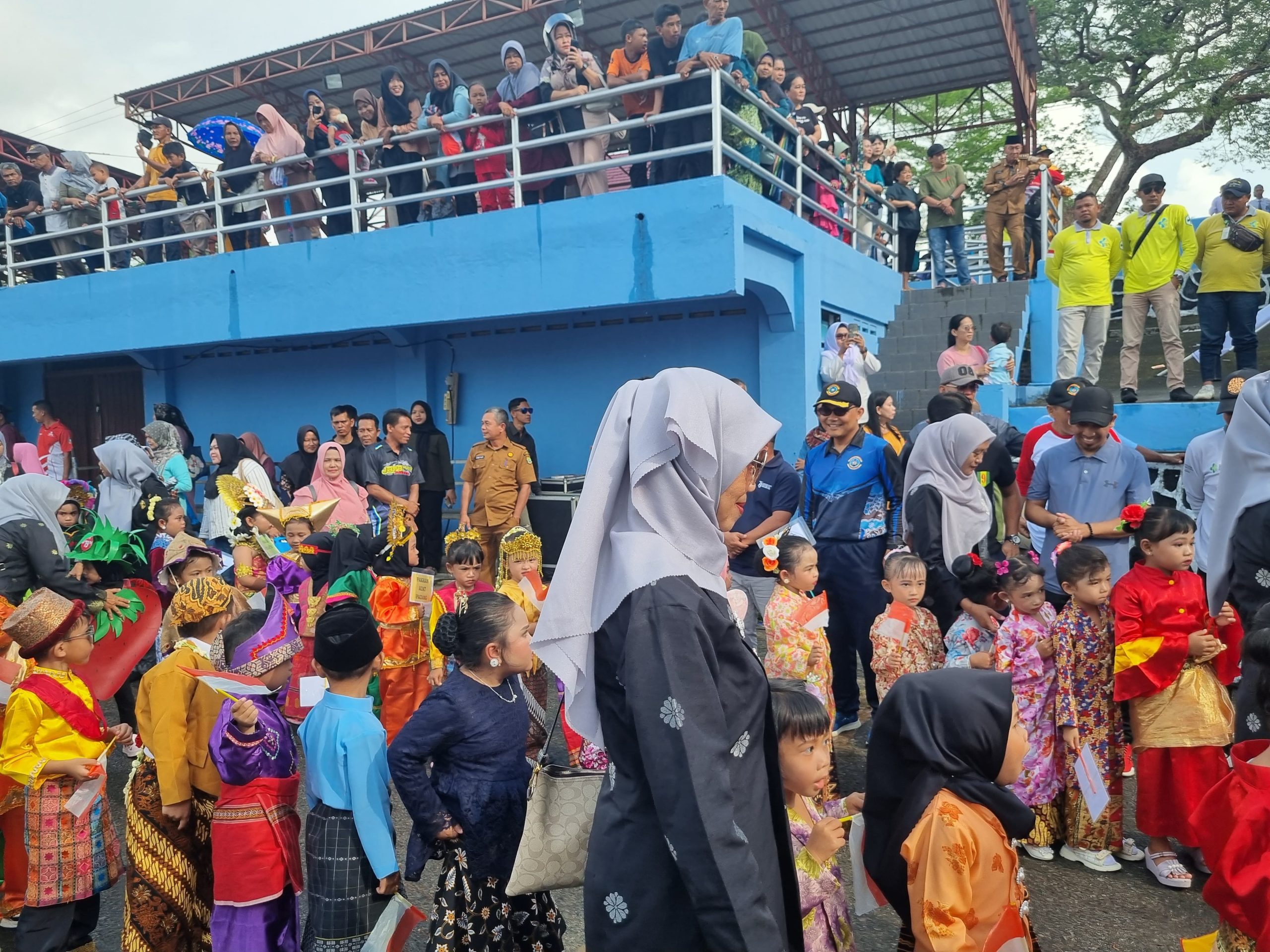 Pawai yang dilepas oleh Forkopimda Kabupaten Lingga ini diikuti oleh seluruh elemen pendidikan yang ada di Kabupaten Lingga, diawali dengan Tim Marching Band Bahana Kumala Maiterya Dabo Singkep diikuti oleh siswa siswi dengan mengenakan atribut dan kostum yang beragam mulai dari pakaian adat serta seragam berbagai profesi.