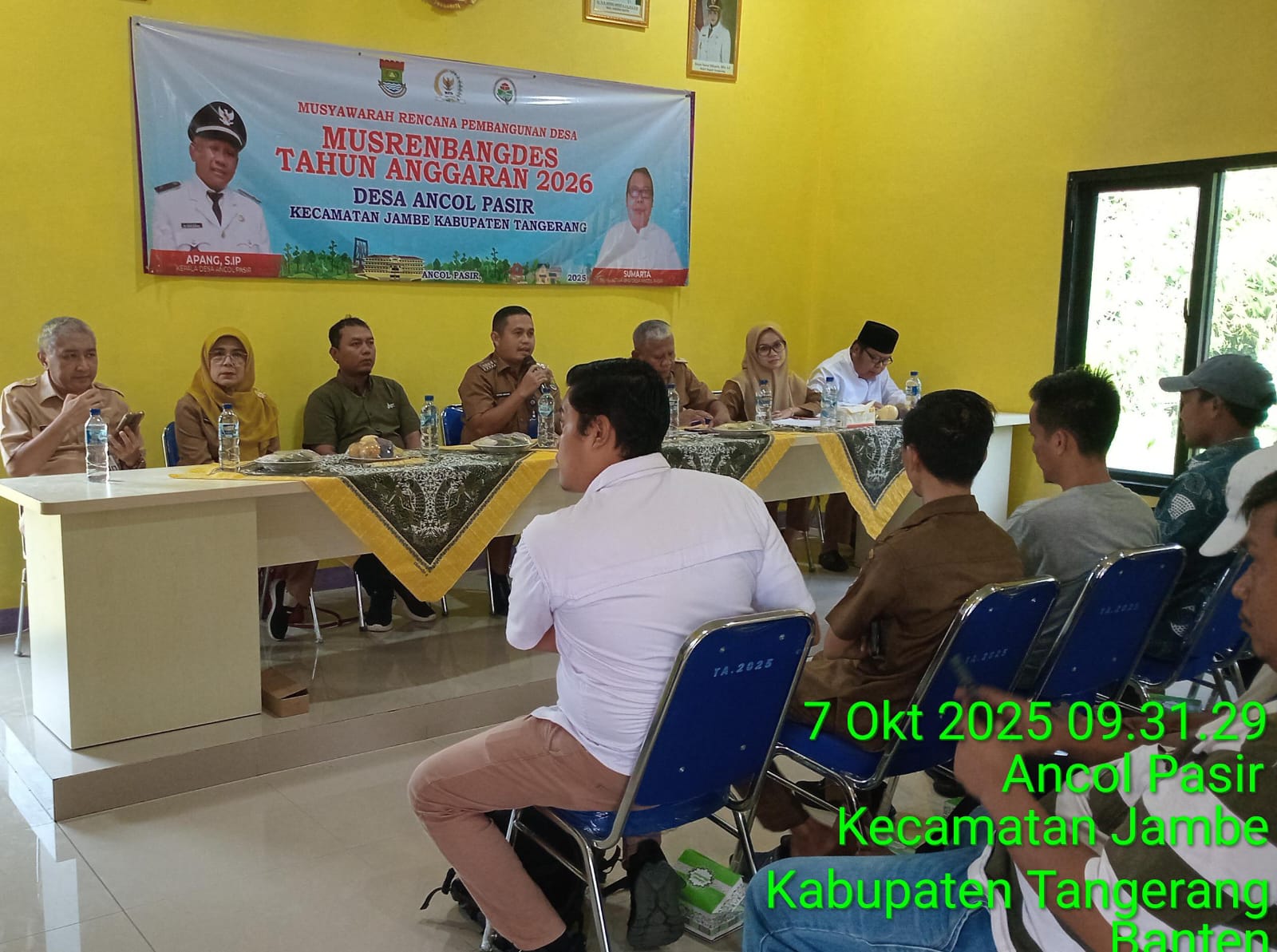 CHAKRANEWS.MY.ID TANGERANG,- Musyawarah Rencana Pembangunan ( Musrenbang ) TA 2025 yang selalu dilaksanakan disetiap Daerah Secara nasional, sudah seharusnya dilaksakan dalam penggunaan anggaran dalam perencaan seperti pembangunan Insfratruktur jalan, sarana bagi umum, ketahan pangan dan lainnya sesuai usulan dari setiap daerah, seperti dalam Musyawarah Penyusunan Rencana Kerja Pemerintah Desa ( RKPDES ) tahun 2026 di Desa Ancol pasir Kecamatan jambe Kabupaten Tangerang diharapkan nantinya dapat terselesaikan dengan baik dan bermanfaat bagi masyarakat.07/10/2025.