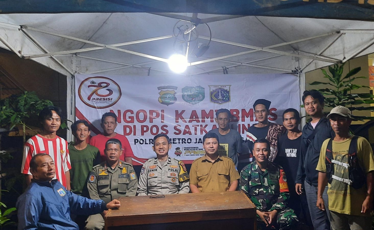 CHAKRANEWS.MY.ID JAKARTA,-Jakarta Pusat – Polsek Metro Tanah Abang melaksanakan kegiatan Ngopi Kamtibmas bersama tiga pilar di Poskamling RW 14 Jalan Jatibunder VII RT 01 RW 14 Kelurahan Kebon Melati Kecamatan Tanah Abang Jakarta Pusat. Selasa (10/09/2024).