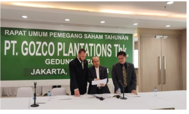 CHAKRANEWSPT. MY.ID JAKARTA,- Gozco Plantations Tbk. (GZCO) telah mengadakan Rapat Umum Pemegang Saham Tahunan dan Paparan Publik 2024 pada hari Rabu, 12 Juni 2024. Acara ini berlangsung di lantai 5, Gedung Gozco, Jakarta, dan dihadiri oleh anggota Dewan Komisaris dan Direksi perusahaan.