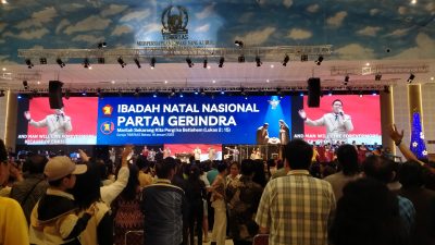 CHAKRANEWS.MY.ID BEKASI,-perayaan Natal Partai Gerindra yang dilaksanakan di Salah satu Gereja ternama TiBERIAS yang beralamat di Bekasi Jln Margahayu Bekasi timur.yang di mulai sabtupukul 08.00 pagi.