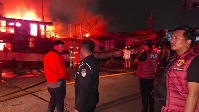 CHAKRANEWS.MY.ID.JAKARTA 28/1/26,– Polres Pelabuhan Tanjung Priok melakukan Pengamanan, Evakuasi dan olah tempat kejadian perkara (TKP) terkait kebakaran kapal KM Makin Melimpah yang terjadi di Dermaga Barat, Pelabuhan Muara Baru, Penjaringan, Jakarta Utara pada Selasa, 27 Januari 2026.
