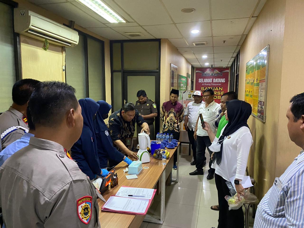 Turut hadir dalam kegiatan ini perwakilan dari Puslabfor Bareskrim Polri, Kanit Provos, Ka Siwas Polres Metro Bekasi Kota, perwakilan Kejaksaan Negeri Bekasi, dan seorang Pengacara. Sebelum dimusnahkan, Tim Puslabfor Mabes Polri melakukan tes untuk memastikan kandungan narkotika dalam barang bukti tersebut. Setelah dinyatakan positif, sabu tersebut kemudian dimusnahkan dengan cara diblender dalam air. Proses pemusnahan diakhiri dengan penandatanganan berita acara.