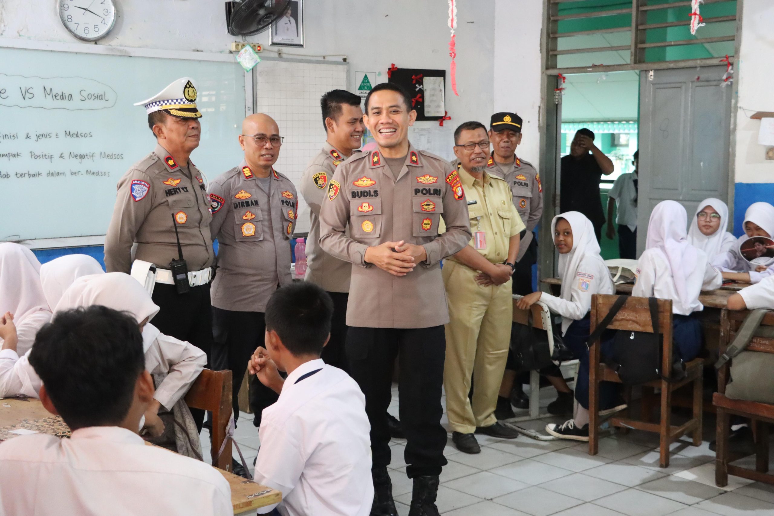 CHAKRANEWS.MY.ID, – Jakarta – Dalam upaya membangun kesadaran hukum dan sosial di kalangan remaja, Polres Pelabuhan Tanjung Priok melakukan kunjungan edukatif ke SMPN 53 Kali Baru, Jakarta Utara. Kegiatan yang dipimpin langsung oleh Wakapolres Kompol Dr. Budi Santosa, S.H., S.I.K., M.H., ini bertujuan untuk memberikan pemahaman kepada para pelajar mengenai bahaya tawuran, narkoba, serta pentingnya etika dalam bermedia sosial dan berani melaporkan bila ada aksi premanisme & pungli ke call center 110 bebas pulsa atau telphone/WA 081399811160 bisa juga langsung datang ke Polres Pelabuhan Tanjung Priok atau Polsek terdekat.