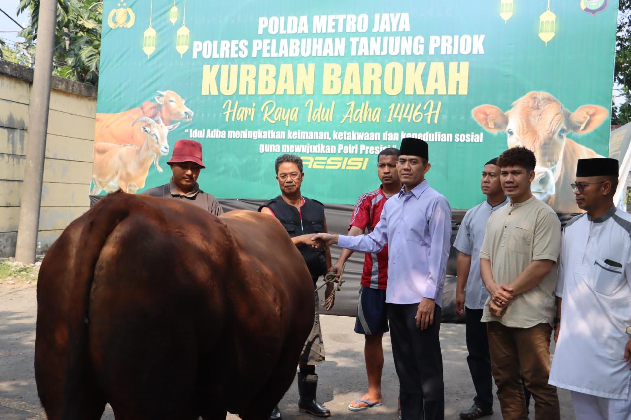 CHAKRANEWS.MY.ID, — Jakarta — Polres Pelabuhan Tanjung Priok melaksanakan kegiatan penyembelihan hewan qurban dalam rangka Hari Raya Idul Adha 1446 H sebagai bentuk ibadah dan kepedulian sosial terhadap sesama. Kegiatan ini dilaksanakan pada Jumat pagi, 6 Juni 2025, bertempat di Lapangan Parkir Presisi Polres Pelabuhan Tanjung Priok.