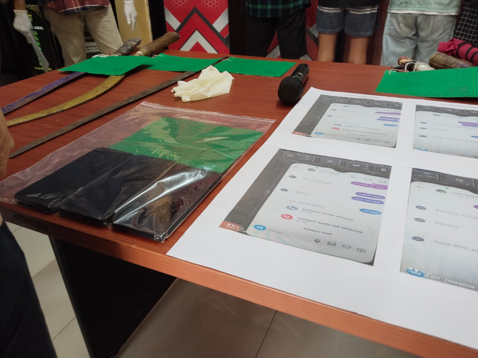 Dalam penangkapan ini, pihak kepolisian berhasil menyita sejumlah barang bukti, termasuk 4 bilah clurit besar, 2 bilah corbek (cocor bebek), 1 bilah samurai, 1 bilah parang, 1 unit sepeda motor Honda PCX dengan nomor polisi B 3288 UVZ, dan 1 unit ponsel Realme C2 berwarna hitam.