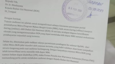 Forum PWI secara resmi telah mengajukan audiensi mendesak kepada Kepala BGN, Dr. Ir. Hindayana, untuk mengklarifikasi dua masalah krusial yang mengancam efektivitas program Presiden Jenderal TNI (Purn.) H. Prabowo Subianto ini.