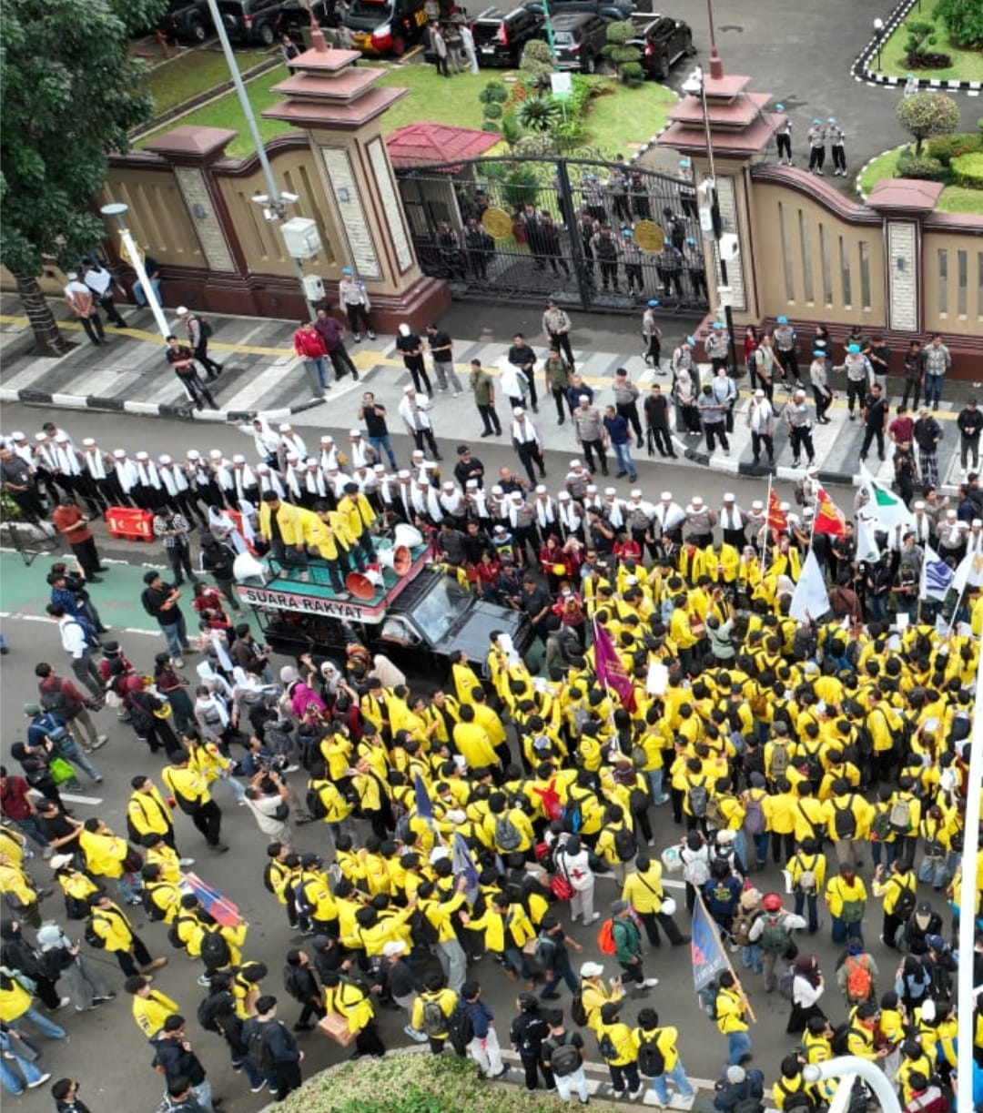 Dengan jumlah massa kurang lebih 400 mahasiswa yang berunjuk rasa di depan Mabes Polri, aparat kepolisian hadir dengan pendekatan yang lebih humanis tanpa barikade kawat berduri dan tanpa formasi represif yang menimbulkan kesan intimidatif.