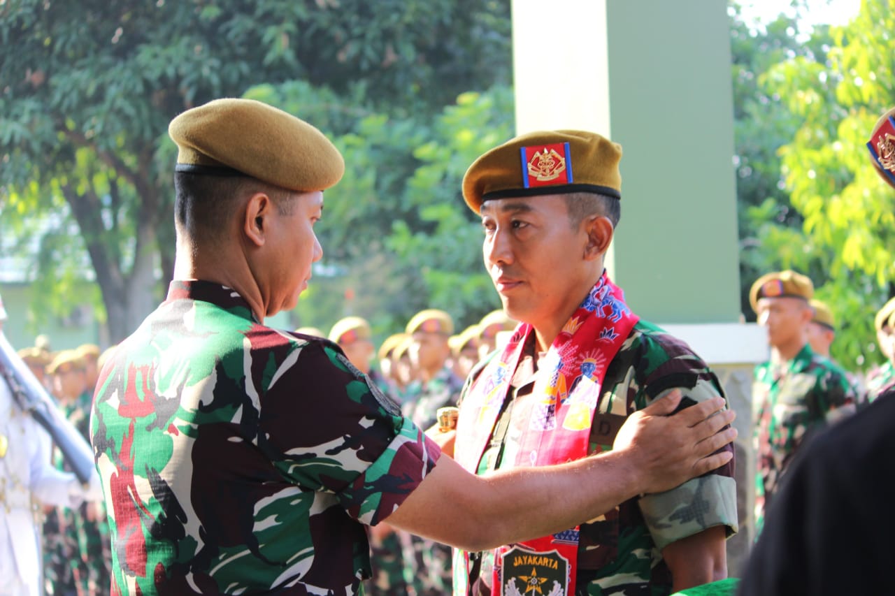Penyambutan dipimpin langsung oleh Komandan Resimen Arhanud 1/Falatehan Kolonel Arh Choirul Huda,M.I.Pol., M.Han. bersama istri Ny. Wida Choirul Huda.
