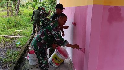 “Kegiatan ini difokuskan pada pengecatan dinding luar dalam gedung sekolah guna mendukung proses belajar mengajar yang lebih baik,” kata Dandim. (Pendim 1710/Mimika)