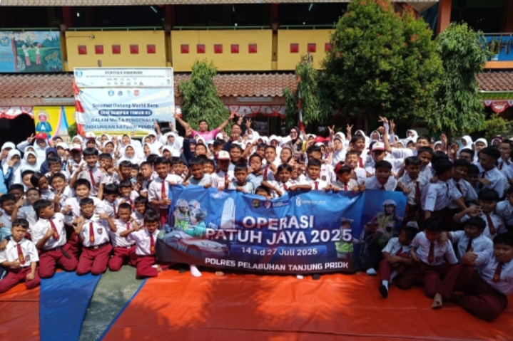 CHAKRANEWS.MY.ID, — Jakarta –, Dalam rangka Operasi Patuh Jaya 2025, Satuan Lalu Lintas (Satlantas) Polres Pelabuhan Tanjung Priok melaksanakan kegiatan edukatif bertajuk Police Goes to School di SDN 03 Semper Timur Jakarta Utara, Senin (21/7). Kegiatan ini disambut antusias oleh para siswa dan guru.