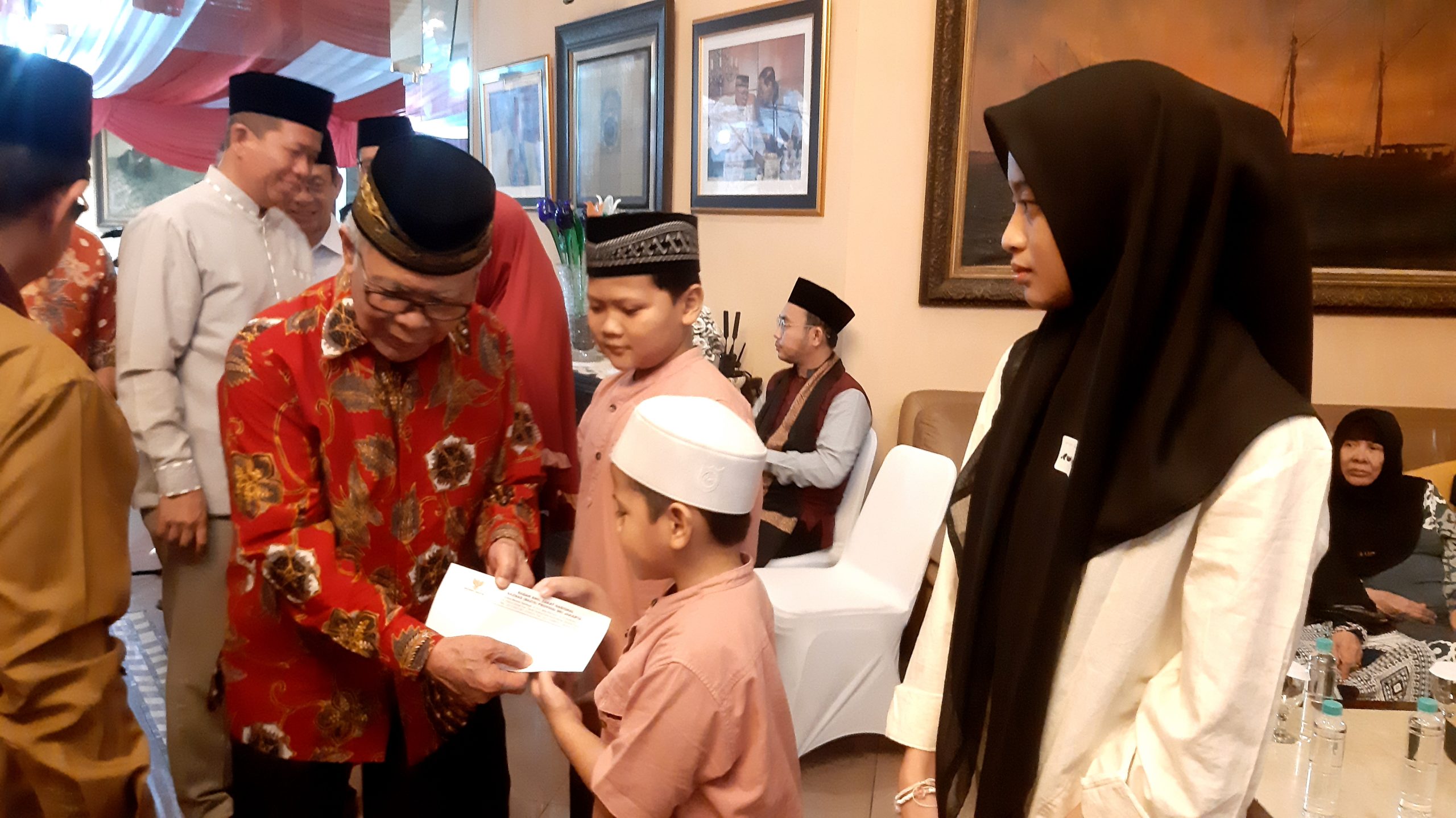 Di tengah acara Gubernur dan H. Sabri Saiman menyerahkan santunan ke anak – anak yatim.
