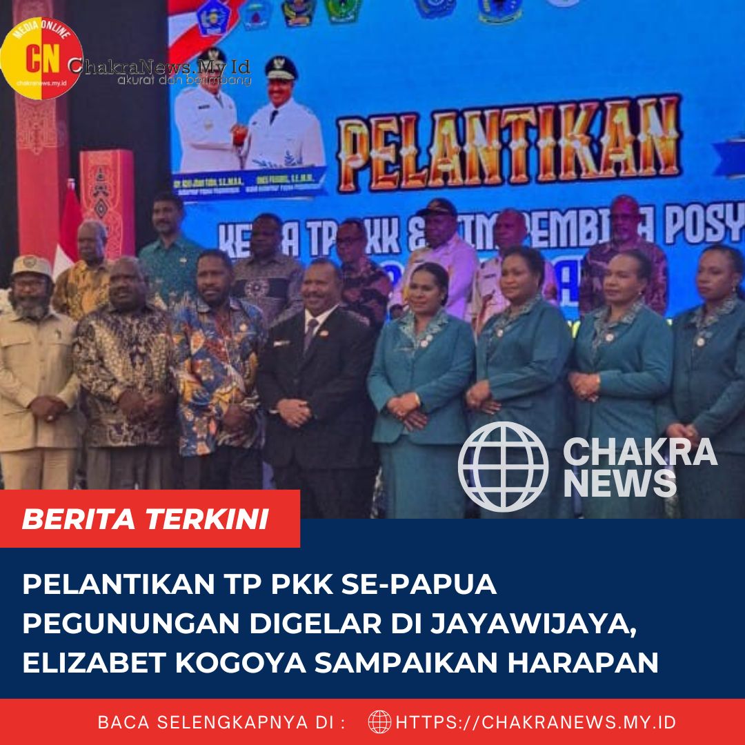 CHAKRANEWS.MY.ID , Wamena, Jayawijaya – Dalam upaya memperkuat fondasi pemberdayaan keluarga di kawasan timur Indonesia, delapan Ketua Tim Penggerak Pemberdayaan dan Kesejahteraan Keluarga (TP PKK) dari kabupaten di wilayah Papua Pegunungan resmi dikukuhkan oleh Ketua TP PKK Provinsi Papua Pegunungan, Yuliana Kobak, S.E. M.M, dalam sebuah seremoni resmi yang digelar di Hotel Baliem Pilamo, Wamena, Kamis (22/5).